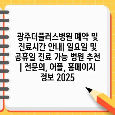 광주더플러스병원 예약 및 진료시간 공지| 일요일 및 공휴일 진료 가능 병원 추천 | 전연락, 어플, 홈페이지 정보 2025