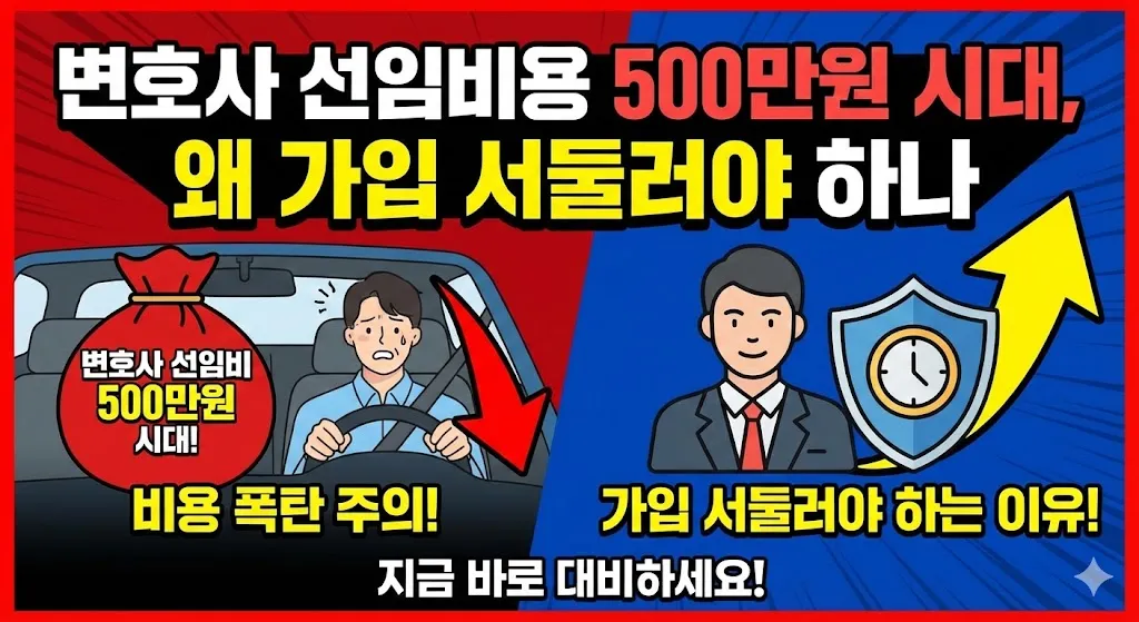 변호사선임비용 500만원 시대, 왜 가입 서둘러야 하나에 대해 알아보겠습니다. 기존 3천~5천만원 보장 구조가 완전히 종료되고, 앞으로는 최대 500만원까지만 보장되는 ‘축소된 운전자보험 시대’가 시작됩니다. 이 글에서는 500만원 체계가 왜 위험한지, 가입을 서둘러야 하는 이유를 핵심만 정리했습니다.
