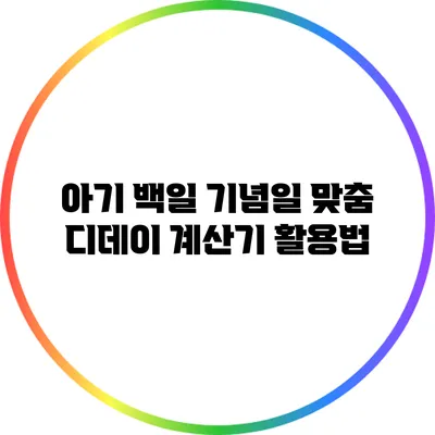아기의 백일 기념일을 준비하는 것은 부모님에게 있어 정말 특별한 순간이에요. 이 특별한 날을 더욱 특별하게 만들기 위해 효과적으로 활용할 수 있는 도구, 바로 디데이 계산기가 있습니다. 이제부터 백일 기념일을 위한 디데이 계산기를 사용하는 방법을 알아보도록 할게요.