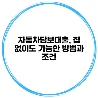 자동차담보대출이 집 없이도 가능한 조건을 알아보세요.