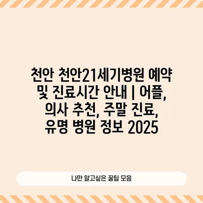 천안 천안21세기병원 예약 및 진료시간 공지 | 어플, 의사 추천, 주말 진료, 유명 병원 정보 2025