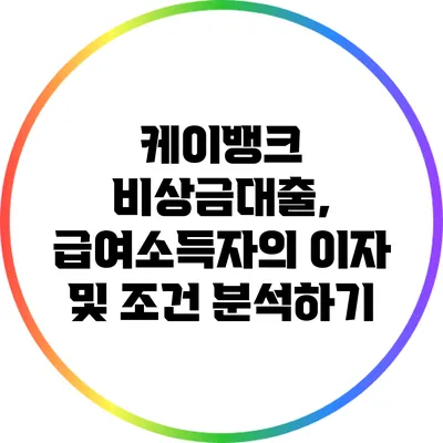 비상금이 필요한 순간, 많은 사람들은 대출을 비교하기 마련이에요. 그 중에서도 케이뱅크의 비상금대출은 급여소득자들에게 매우 유용한 옵션이 될 수 있어요. 비상금대출을 통해 필요한 자금을 손쉽게 마련할 수 있다는 점은 급여소득자들에게 큰 매리트가 될 수 있어요.