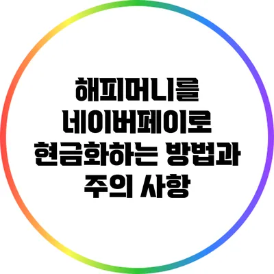 해피머니를 네이버페이로 현금화하기 위해서는 몇 가지 단계가 필요해요. 아래의 방법을 차근차근 따라 해보세요.