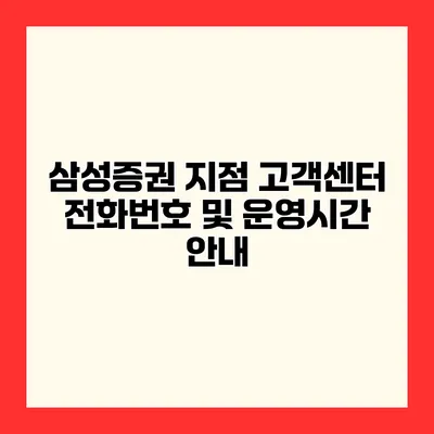✅ 삼성증권 고객센터의 연락처와 운영 시간을 빠르게 확인해 보세요.
