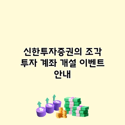 신한투자증권에서는 조각 투자 계좌를 새롭게 개설하는 고객을 위해 특별 이벤트를 진행해요. 이 이벤트를 통해 고객들은 다양한 혜택을 누릴 수 있답니다.
