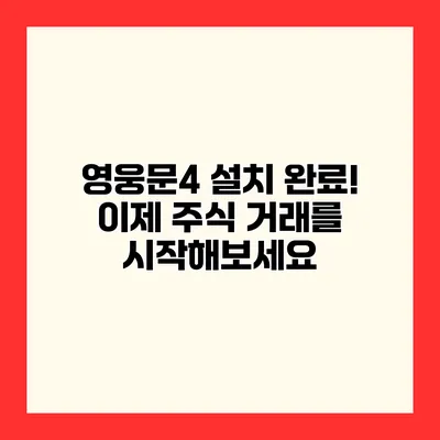 영웅문4 설치 완료! 이제 당신의 투자 여정이 시작됩니다. 주식 거래는 많은 이들에게 신나는 경험이자, 그만큼 조심스러운 선택이기도 하죠. 한 번의 올바른 선택이 당신의 재정적 미래를 변화시킬 수 있으니, 신중하게 접근해야 해요.