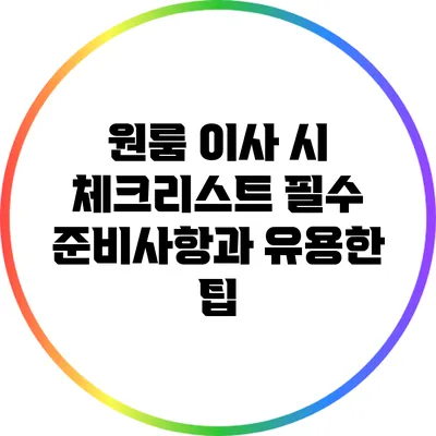 원룸 이사 필수 체크리스트를 지금 확인해 보세요!
