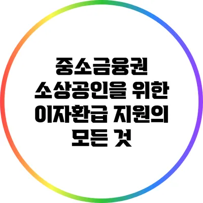 소상공인들은 경제의 중요한 축을 이루며, 특히 지역 경제 활성화에 크게 기여하고 있어요. 그러나 많은 소상공인들이 자금조달 문제로 어려움을 겪고 있는 현실이에요. 이러한 문제를 해결하기 위해 중소금융권에서는 소상공인을 대상으로 한 이자환급 지원 제도를 운영하고 있답니다. 이 제도에 대해 상세히 알아보도록 할게요.