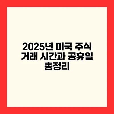 2025년 미국 주식 거래 시간과 공휴일에 대한 이해는 성공적인 투자에 필수적인 요소입니다. 주식 거래를 하려는 투자자라면, 이 정보를 정리해두고 필요할 때마다 확인하는 습관을 가지세요. 그러면 더 나은 투자 결정을 내릴 수 있을 거랍니다.