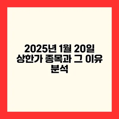 2025년 1월 20일 상한가 종목 분석 및 그 이유