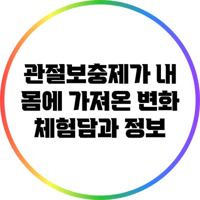 관절의 건강을 유지하는 것은 나이가 들면서 점점 더 중요해져요. 특히 평소에 운동을 즐기는 사람들에게는, 관절 건강이 지켜지지 않으면 큰 문제가 될 수 있답니다. 많은 분들이 관절보충제를 섭취하고 나서 변화된 몸의 이야기를 나누고 있죠. 저 또한 그 중 한 사람이에요. 이번 포스팅에서는 관절보충제를 섭취한 후의 변화와 그 과정에서 알게 된 정보들을 공유하려고 해요.