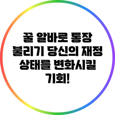 꿀 알바로 통장 불리기: 당신의 재정 상태를 변화시킬 기회!
