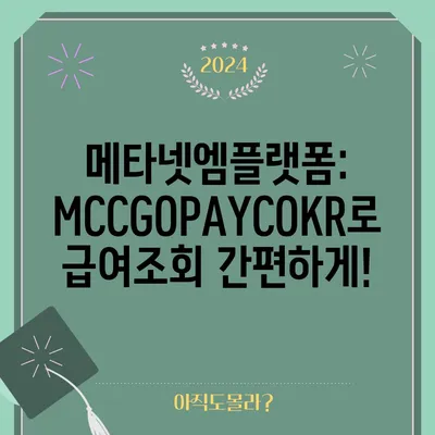 메타넷엠플랫폼: MCCGOPAYCOKR로 급여조회 간편하게!