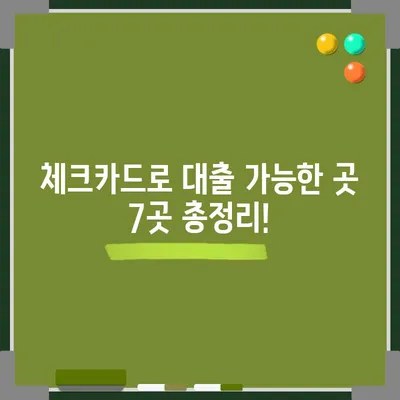 체크카드로 대출 가능한 곳 7곳 총정리!
