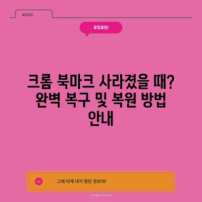 Meta Description: 구글 크롬에서 북마크가 사라졌을 때의 완벽한 복구 및 복원 가이드를 제공합니다. 다양한 방법과 팁으로 쉽게 복구하세요.