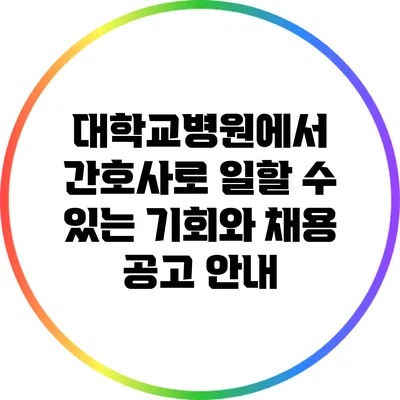대학교병원에서 간호사로 일할 수 있는 기회와 채용 공고 안내