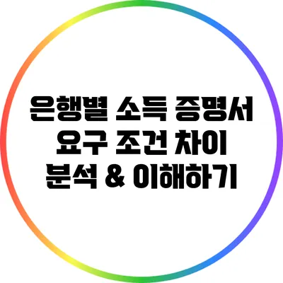 은행마다 소득 증명서의 요구 사항이 상이할 수 있습니다. 일반적으로 고려되는 사항으로는 소득의 종류, 증명 방법, 및 제출 서류를 들 수 있습니다. 아래 표를 통해 다양한 은행의 요구 조건을 정리해 보았습니다.