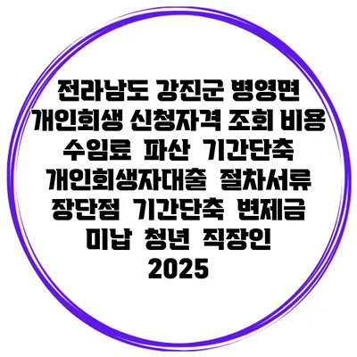 ✅ 전라남도 강진군 병영면 개인회생 신청 자격과 절차를 알아보세요.