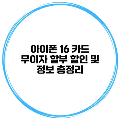아이폰 16 카드 무이자 할부 할인 및 정보 총정리 2025년 03월 17일 by 전문기자 아이폰 16이 출시된 후 많은 소비자들이 이 신기술을 어떻게 저렴하게 구매할 수 있을지 궁금해하고 있어요. 아이폰 16 카드 무이자 할부 … Read more