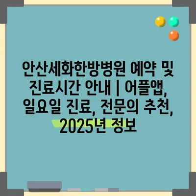 안산세화한방병원 예약 및 진료시간 안내 | 어플앱, 일요일 진료, 전문의 추천, 2025년 정보 2024년 11월 16일 by 전문기자 안산세화한방병원 예약 및 진료시간 공지 | 어플앱, 일요일 진료, 전연락 추천, 2025년 정보에 대해 소개합니다. 안산세화한방병원은 고객님의 편의를 위해 다양한 … Read more