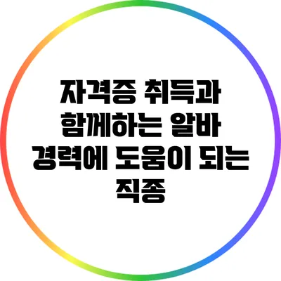 자격증 취득과 함께하는 알바: 경력에 도움이 되는 직종 2024년 12월 30일 by 전문기자 자격증 취득과 함께하는 알바: 경력에 도움이 되는 직종 많은 취업 준비생들이 자격증을 취득하면서 동시에 경력을 쌓고 싶어합니다. 이 두 가지를 … Read more